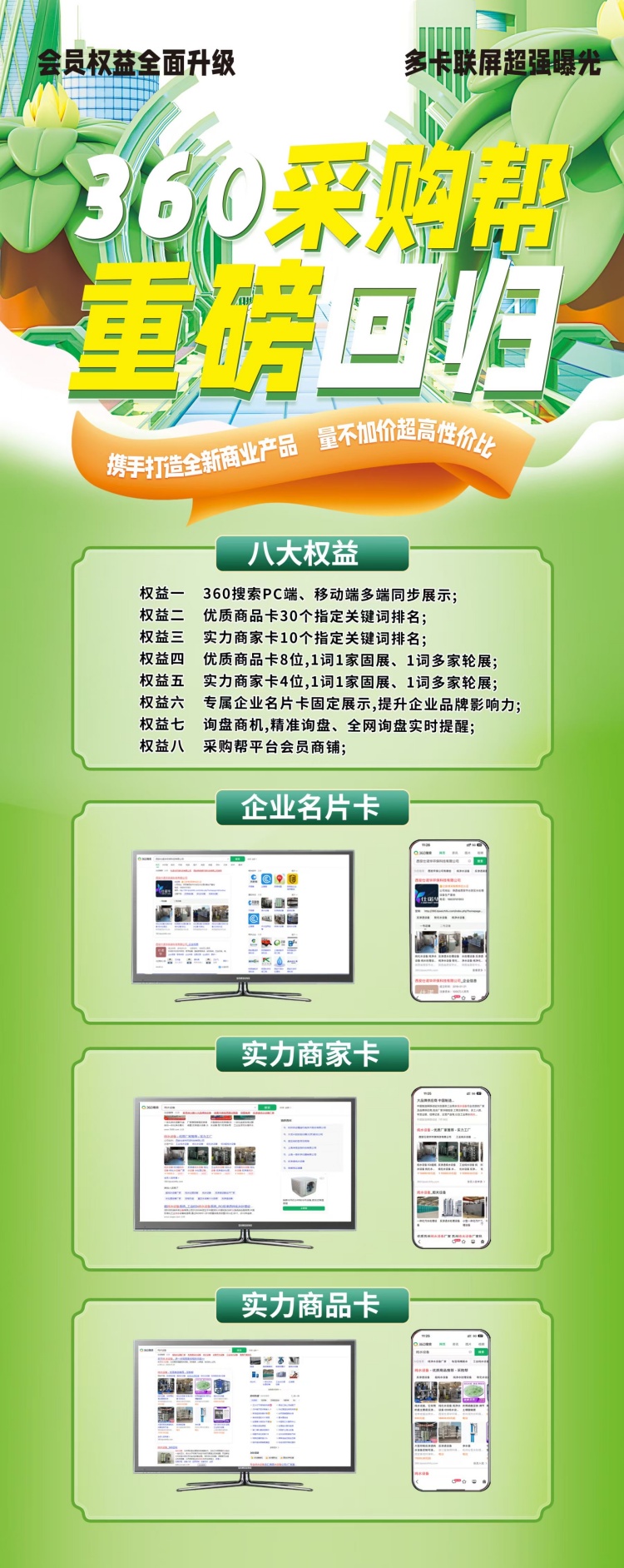 360 采购帮是360旗下一款专业的企业采购平台,它为企业提供一站式的采购解决方案,致力于帮助企业降低采购成本、提高采购效率,同时也为卖家提供推广服务的机会。